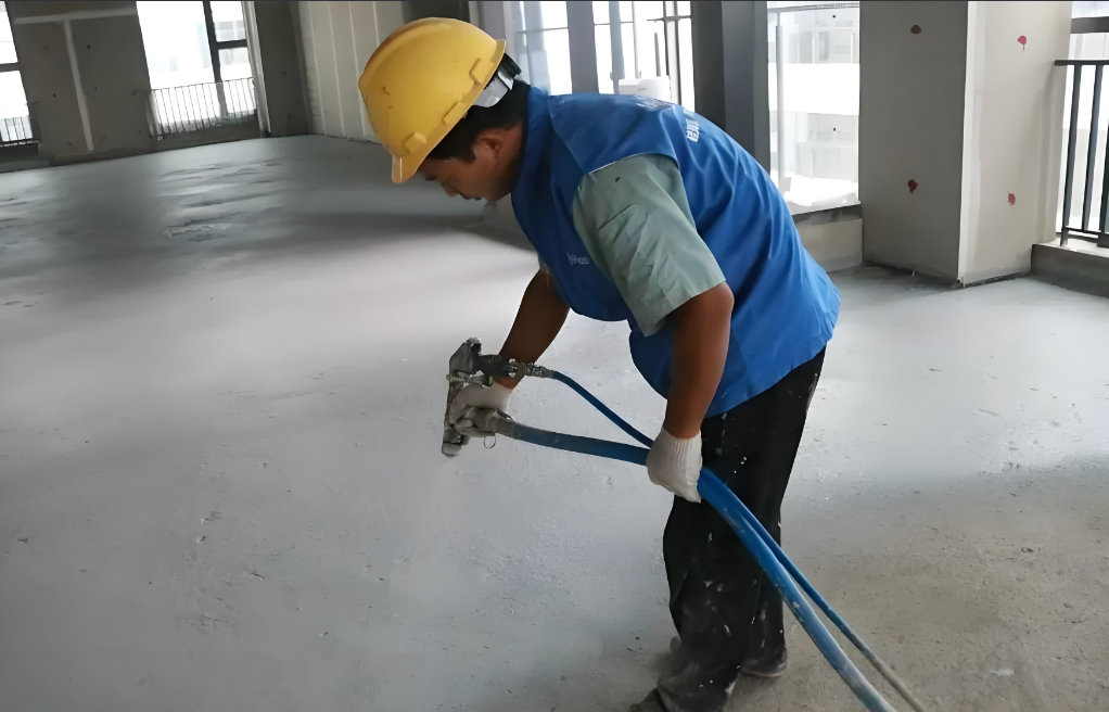 施工工艺:喷涂前严格要求:要清扫地板和墙体表面浮尘土,必须要去掉凹凸不平的颗粒和松散杂质,将灰渣铲除并扫净,做专用隔声砂浆找平,底料不能有油污油脂和蜡质,适当洒水湿润,就可以喷涂了。墙体和天花顶不需要酒水。如果是在楼板地面施工,可以抹涂、刮涂或喷涂,建议喷涂。