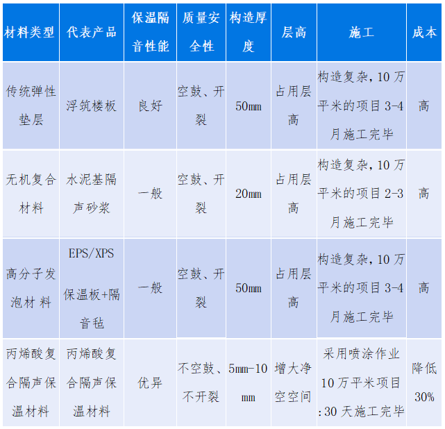 丙烯酸复合隔声保温材料是新型建筑功能材料,以改性丙烯酸树脂和丙烯酸乙酯共聚物为胶凝基材,复合气凝胶、阻尼材料和无机填料等制成的高性能多孔材料。该材料通过喷涂工艺形成楼地面隔声保温层,兼具卓越的隔声、保温、防火及环保性能,主要应用于建筑楼板,以提升建筑的声学舒适度和节能效果。丙烯酸复合隔声保温材料突破了传统材料功能单一的局限,实现了“隔声-保温-防火-环保”四效合一,尤其适用于绿色建筑、医疗静音工程、交通枢纽等对性能要求严苛的场景,是未来节能建筑的主流解决方案之一。