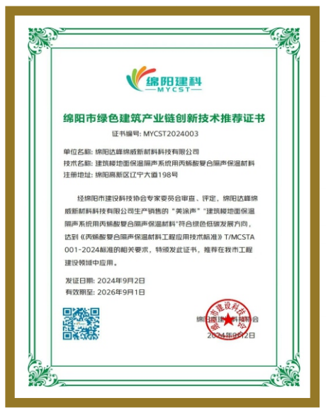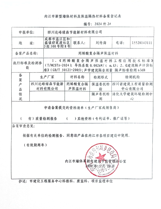 “绵阳造”绿色节能环保建材-丙烯酸复合隔声保温材料