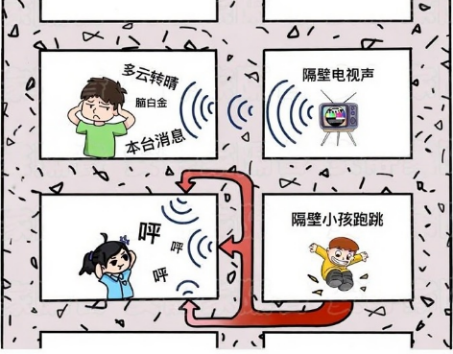 撞击传声是通过固体介质传播的声音,如脚步声、拖拽家具声等。当物体撞击楼板时,会产生振动,振动通过楼板和墙体等固体结构传播到其他房间,形成噪声。这种噪声通常具有较高的频率和较大的强度,容易引起人们的不适。