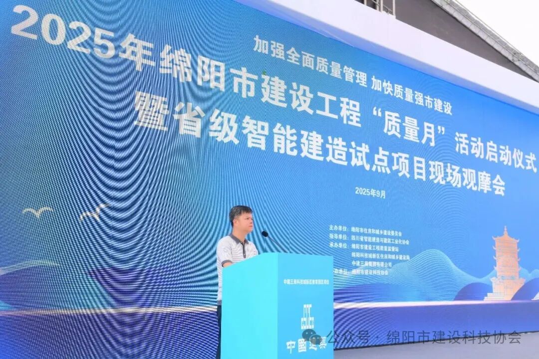 2025年9月12日,绵阳市“质量月”暨智能建造省级试点项目观摩会活动在科技城新区教育园区中建三局绵阳中学项目现场正式启动。本次活动由绵阳市住房和城乡建设委员会主办,以“示范引领促提升”为主题,旨在激励企业加强质量管理,持续提升建筑品质,推动全市工程质量高质量发展。